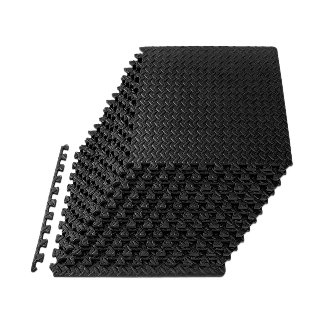 Material resistente a los golpes de pesas y el uso continuo, fabricado en materia EVA Foam de alta duración de casi media pulgada de grosor. Y diseñado en rompecabezas para ensamblar en el espacio que requieras.
